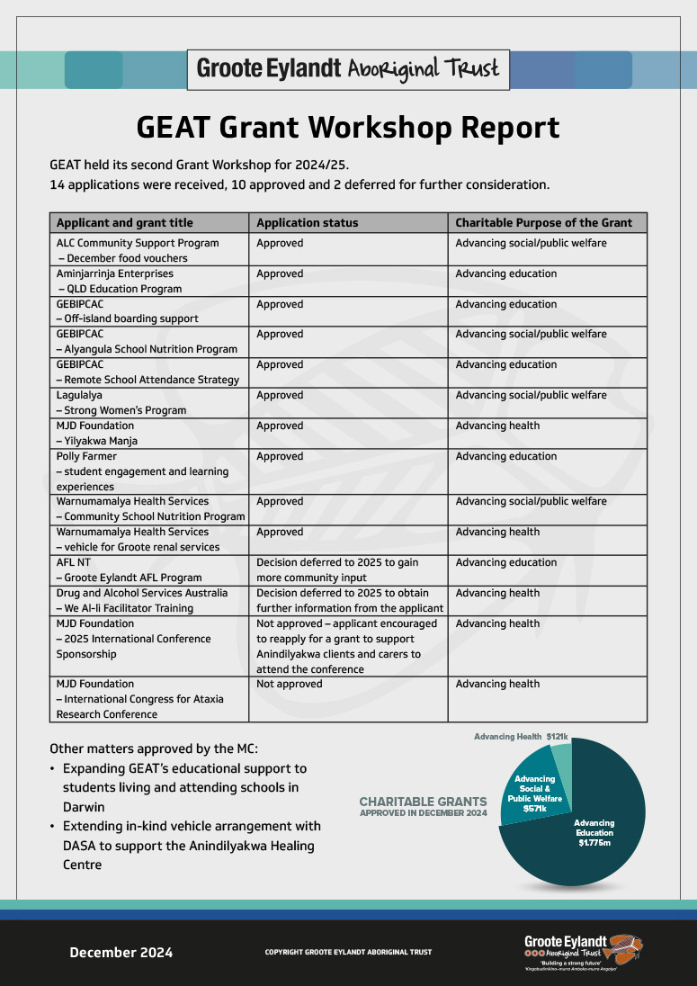 GEAT Incorporated is the Trustee for the Groote Eylandt Aboriginal Trust